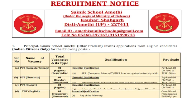 Latest notifications for Sainik School recruitment 2025 updated today are listed here. Below is the complete list of Sainik Schools Society (Ministry of Defence) recruitment in India for the current year 2025 where you can find information on how you can apply and register for various opportunities: Sainik School Kunjpura Recruitment 2025: Apply for Assistant, … Read more