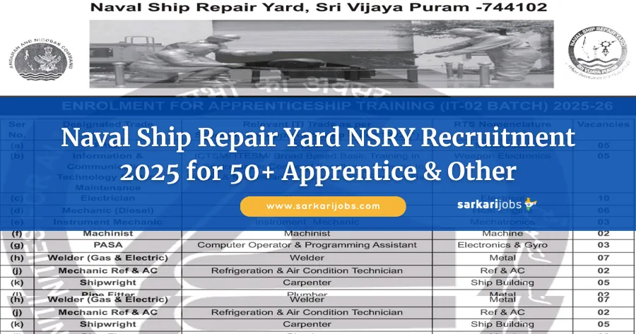Naval Ship Repair Yard NSRY Recruitment 2025 for 210+ Apprentice & Other Vacancies
