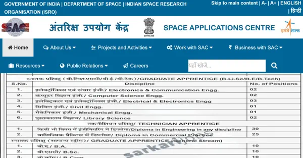 SAC Recruitment 2025 for 20+ Jr Translation Officers, Assistants / Rajbhasha & Other Posts at Space Applications Centre